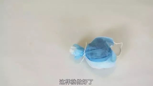 然后,取一个透气好的一次性口罩,做一个抽出铁丝的处理,并用口罩将适量的碎洋葱包裹起来并取带子扎好。